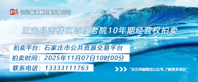 • [拍賣公告]正定縣南樓區(qū)域敬老院10年期經(jīng)營權(quán)拍賣(三次)20251107 2025-10-30